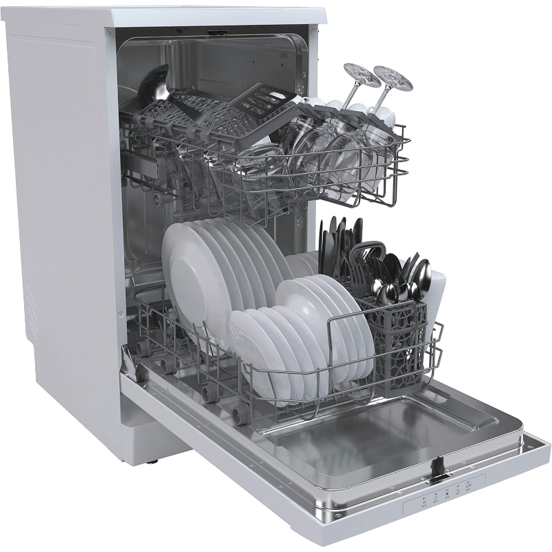 El lavavajillas Candy CDPH 2L1049W cuenta con una capacidad para 10 servicios. Tiene una clasificación energética de tipo F. Este modelo presenta un sistema de montaje independiente. Dispone de 6 programas de lavado, incluida una opción de media carga. Su consumo de agua en el ciclo estándar es de 9 litros. Incorpora un panel de control con indicadores LED. La temperatura ajustable de lavado oscila entre 45 y 70 grados Celsius. Su ciclo de secado utiliza ventilación forzada. La duración del programa más corto es de 29 minutos. El aparato tiene conexión de agua fría y caliente. Las dimensiones son estándar para un lavavajillas de mesa. Este producto no incluye instalación.