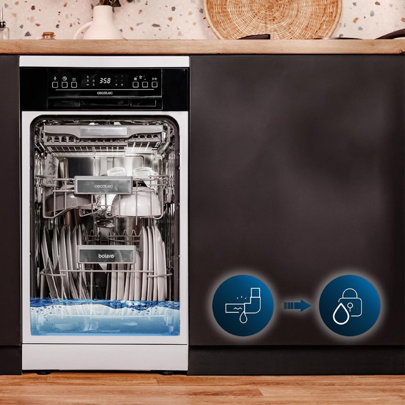 El lavavajillas Cecotec Bolero Aguazero presenta una capacidad para hasta 10 servicios. Dispone de 8 programas de lavado, incluyendo programas económicos y rápidos adaptados a diferentes necesidades. La temperatura de lavado es ajustable, con un rango de hasta 70 grados Celsius. Este modelo cuenta con un sistema de secado mediante ventilación que optimiza el proceso después del lavado. Sus dimensiones específicas permiten su instalación en diversos espacios. La conectividad permite su control a través de una aplicación móvil, proporcionando opciones de programación remota. Los componentes internos incluyen un filtro de autolimpieza y un intercambiador de calor, que contribuyen al mantenimiento del aparato. El consumo de agua está diseñado para un uso eficiente, y la clasificación energética se establece en A++.
