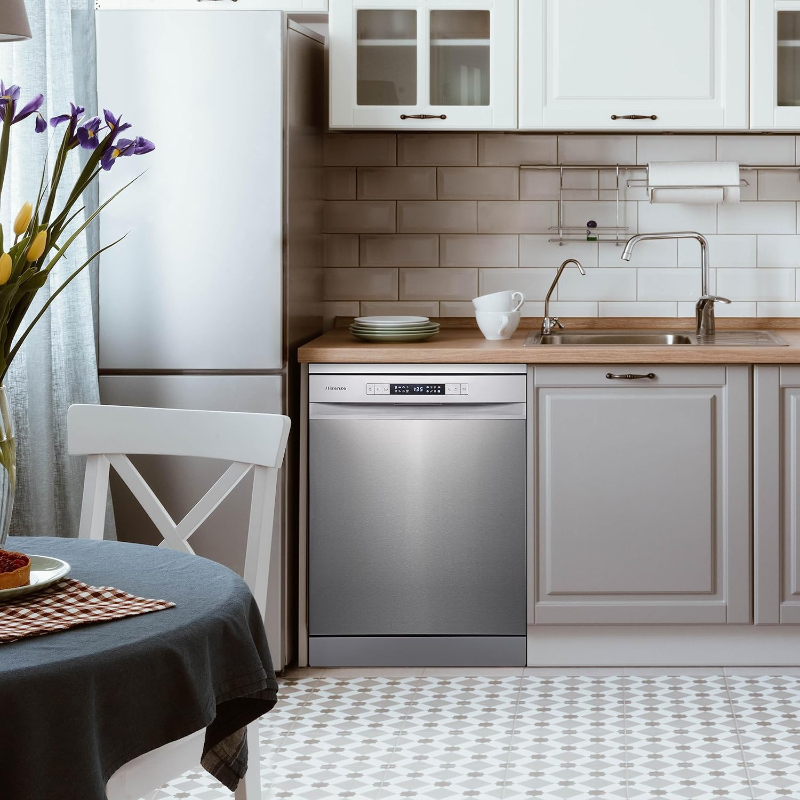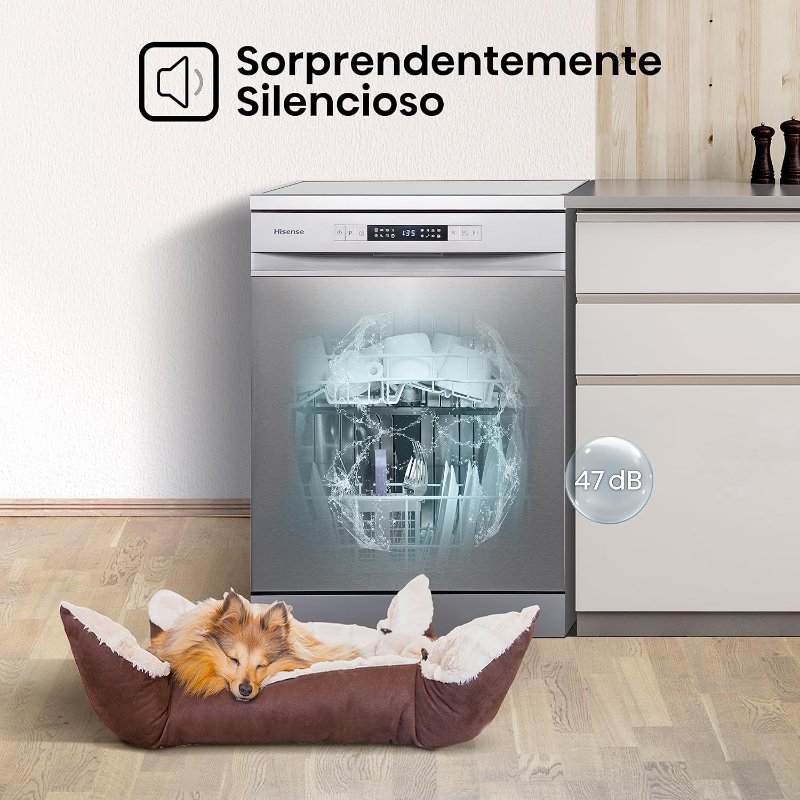 El Lavavajillas Hisense Serie HS tiene la capacidad de 9 a 16 cubiertos, lo que permite lavar una cantidad considerable de utensilios en cada ciclo. Funciona con diferentes programas de lavado que se adaptan a las necesidades generales de limpieza. Incorpora tecnología de secado que puede ser utilizada dependiendo del programa seleccionado. Tiene una clasificación energética que permite evaluar su consumo de electricidad. Los ciclos de lavado incluyen opciones que permiten ajustar la duración según la suciedad y el tipo de carga. Su diseño incluye un panel de control con botones para seleccionar los programas. Está construido con materiales que son comunes en la industria de electrodomésticos. Dispone de sistemas de seguridad que evitan fugas de agua durante su funcionamiento. La instalación se realiza de forma independiente y es compatible con las conexiones eléctricas y de agua estándar.